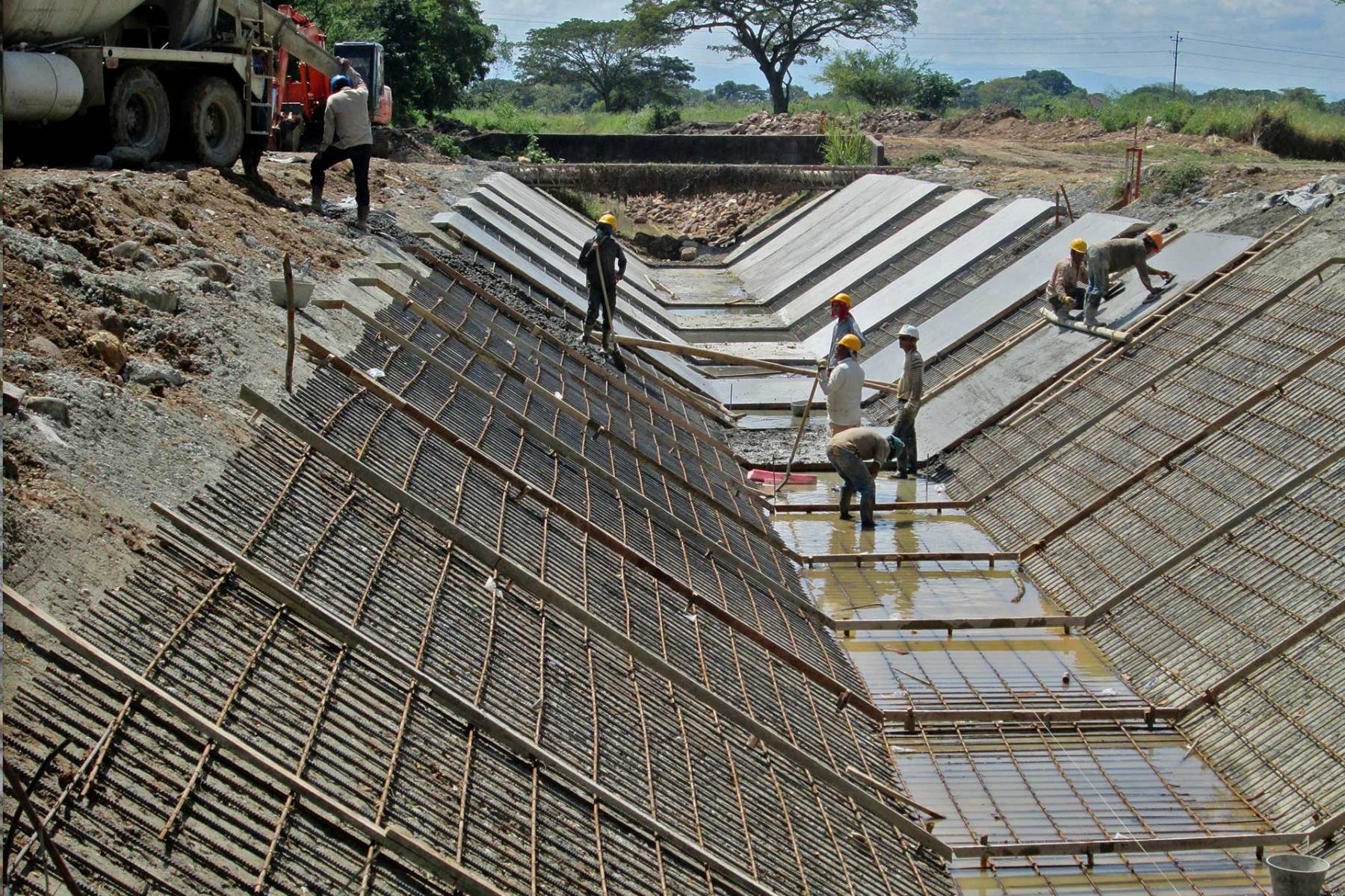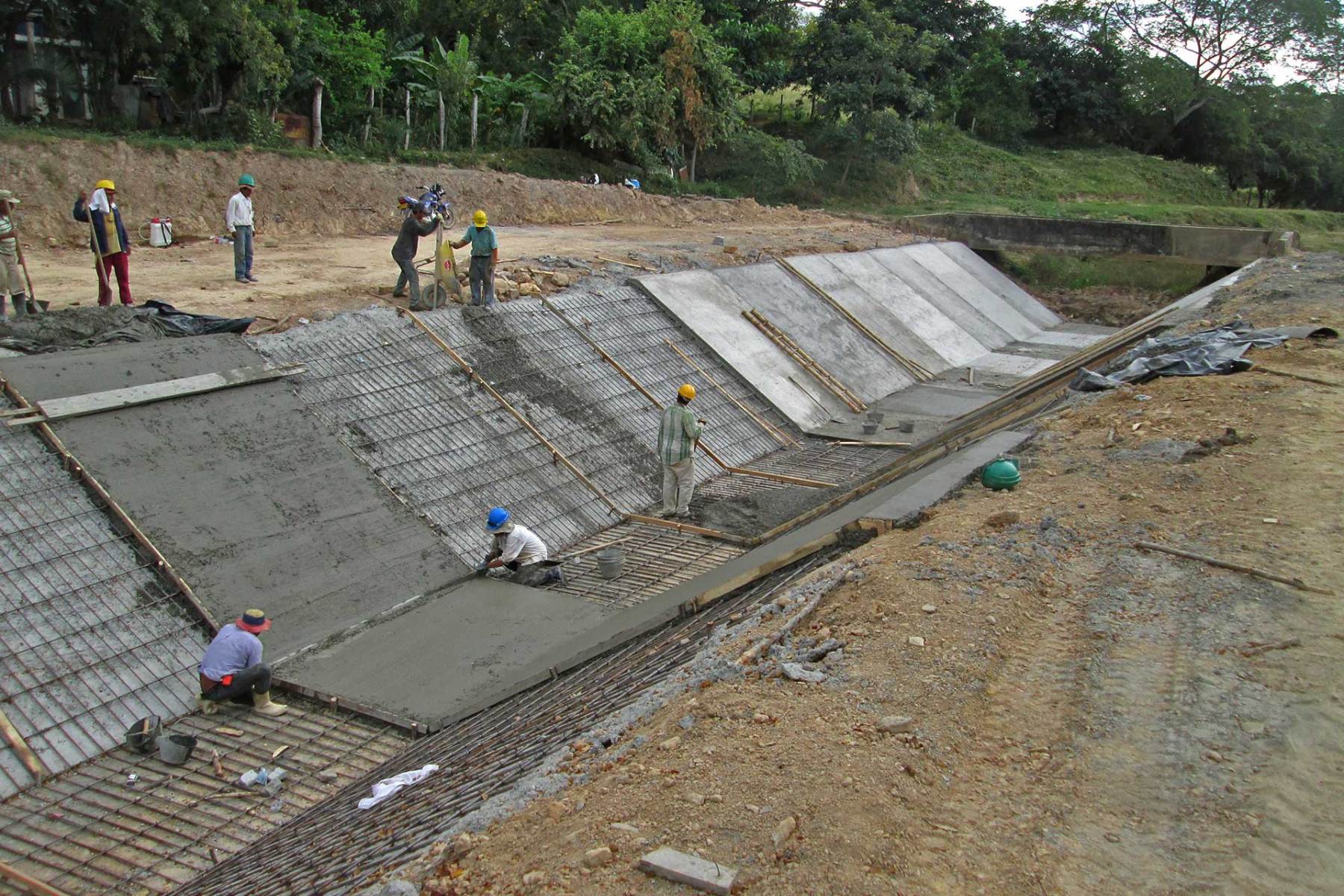 DESCRIPCION: Construcción de revestimiento de tramos de canales, instalación de tubería PVC sanitaria ø27” y construcción de 2 box coulvert; todo ello en forma dispersa en los dos canales principales del distrito de riego: Norte y Sur. En el canal Norte corresponden a la protección de 7 estructuras hidráulicas puente-canales. En el canal Sur se realizó la protección a 3 tramos para un total de 253 metros lineales revestidos de canal. Inversión final de $ 2.070.000.000 millones.
